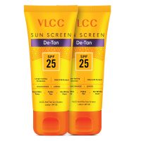 VLCC Anti Tan Sunscreen Lotion SPF 25 PA helps in protection against Sun damage while moisturizing the skin. The lotion is enriched with Vitamin E, Niacinamide, Kojic acid, Lemon oil, Almond oil, Wheatgerm oil, and extracts of Ashwagandha, Watermelon, Orange Peel, Peppermint leaf, and Nagkesar flower. This paraben-free sunscreen lotion effectively keeps the skin nourished and helps protect it from UVA & UVB rays and tanning in the harsh summers.